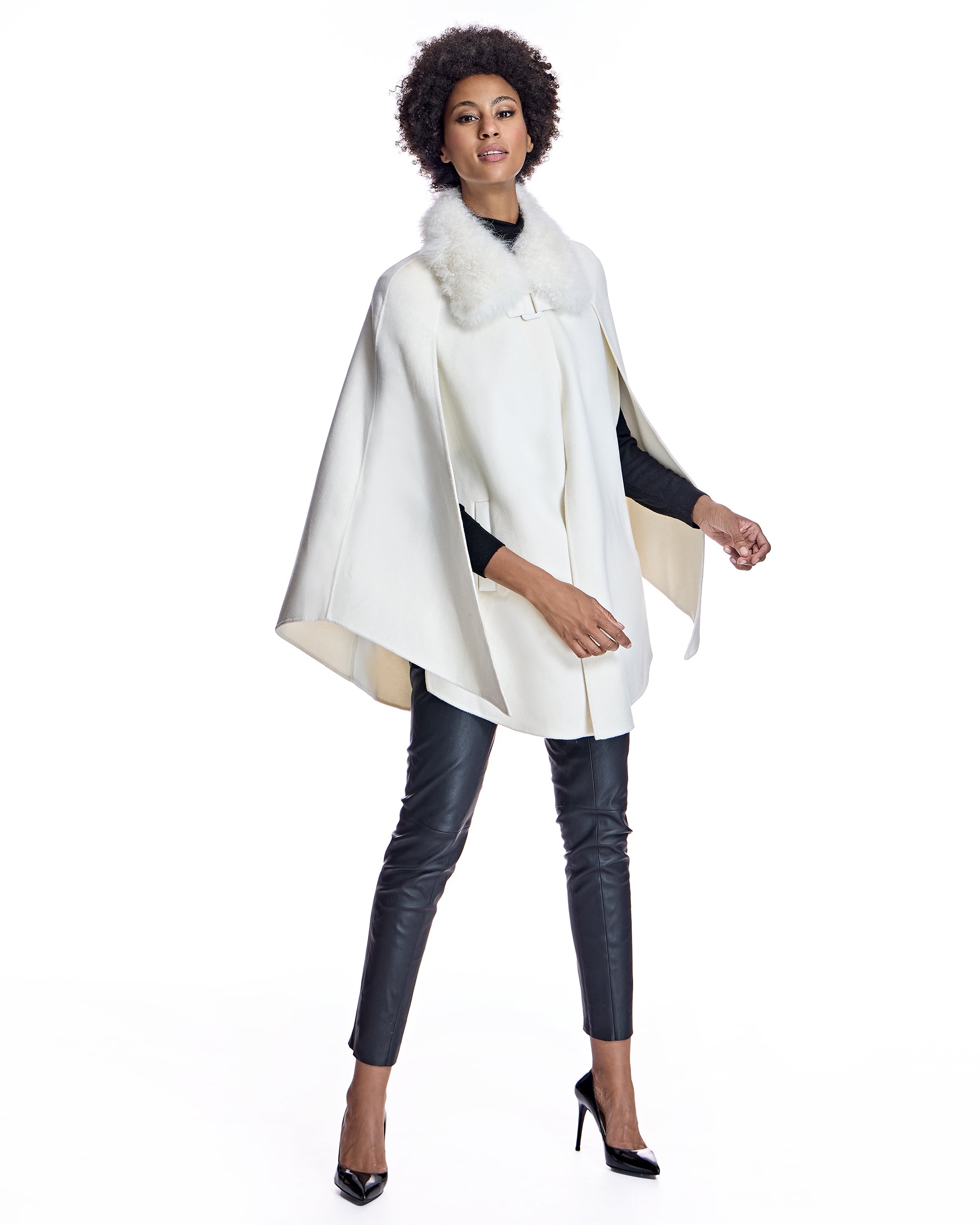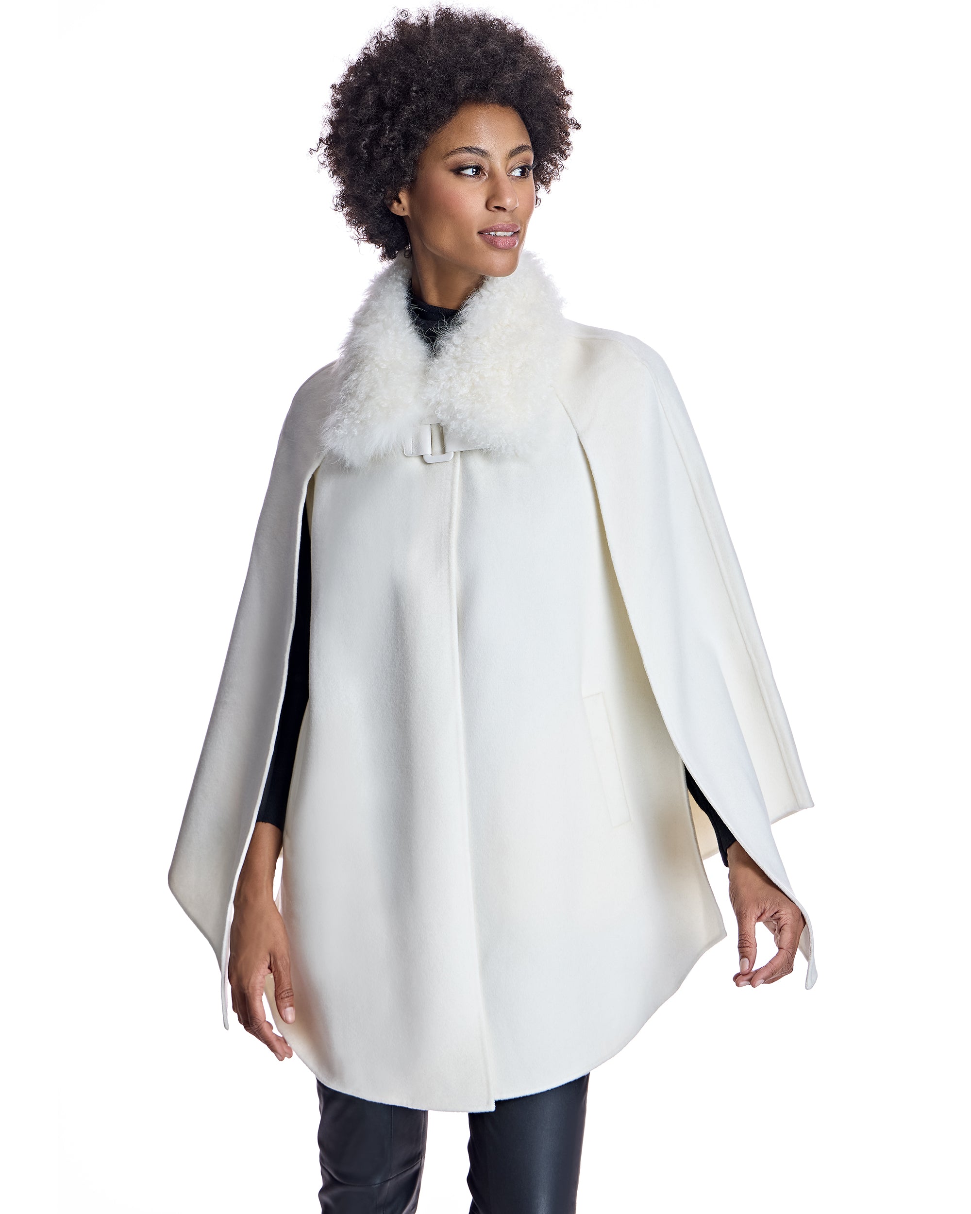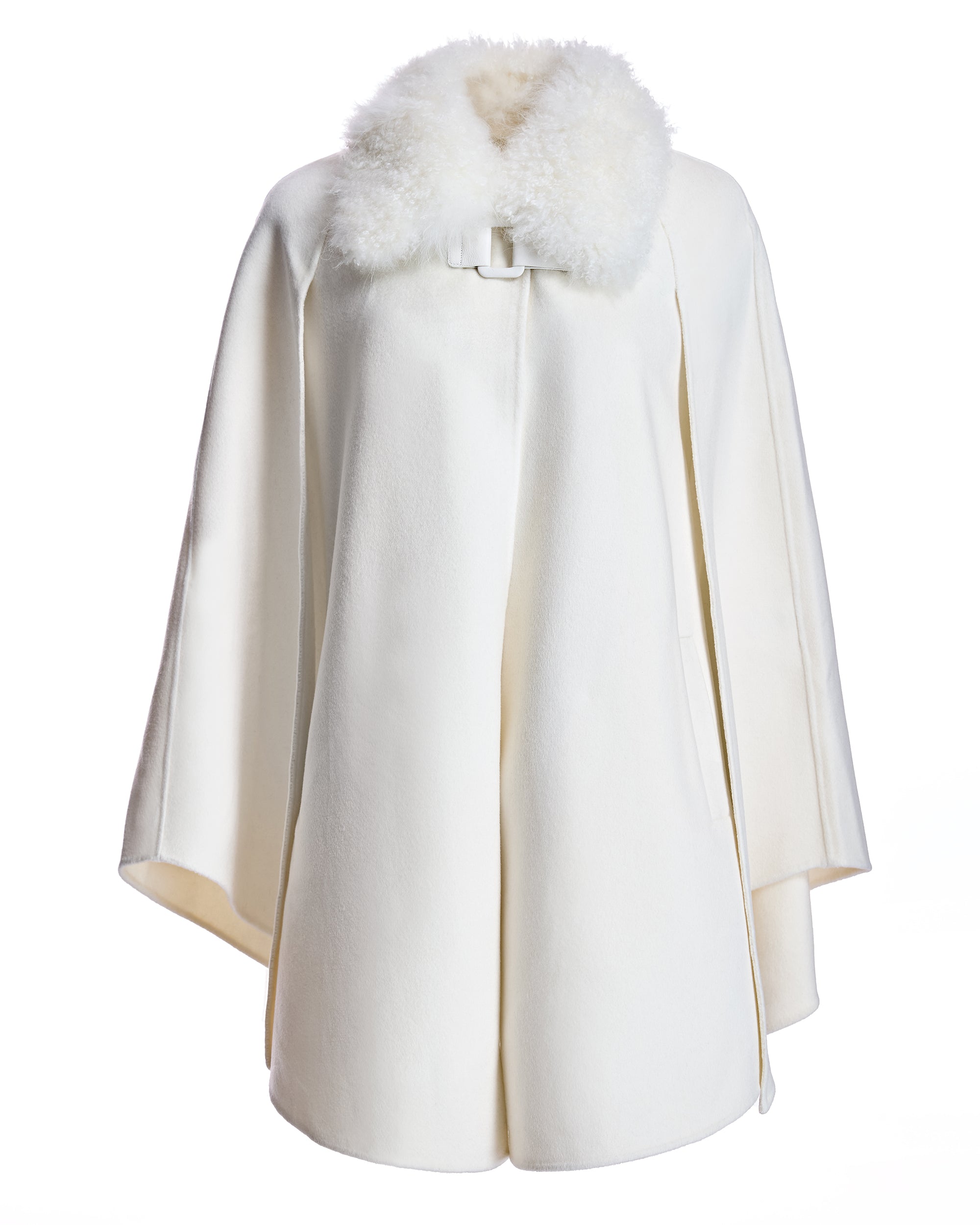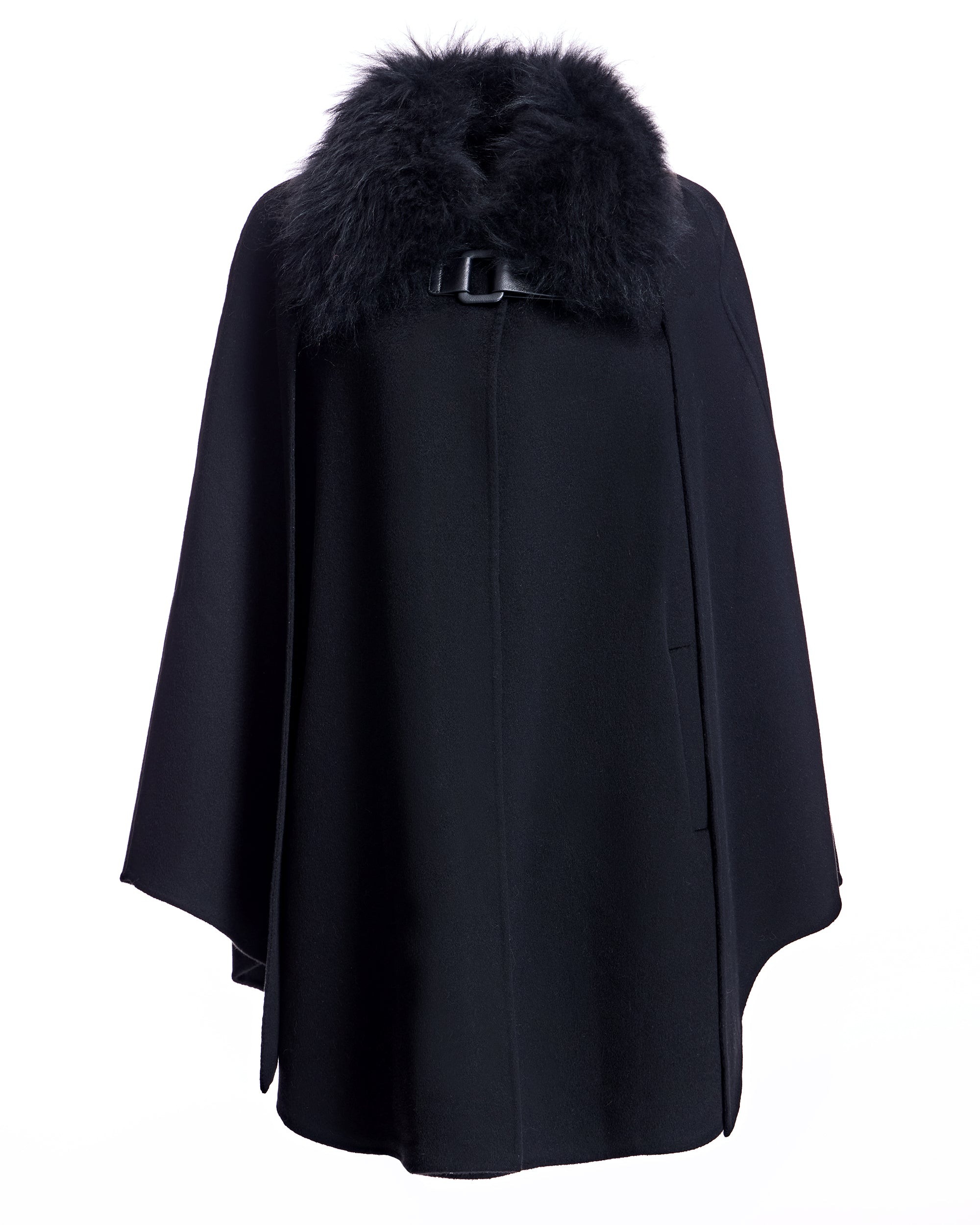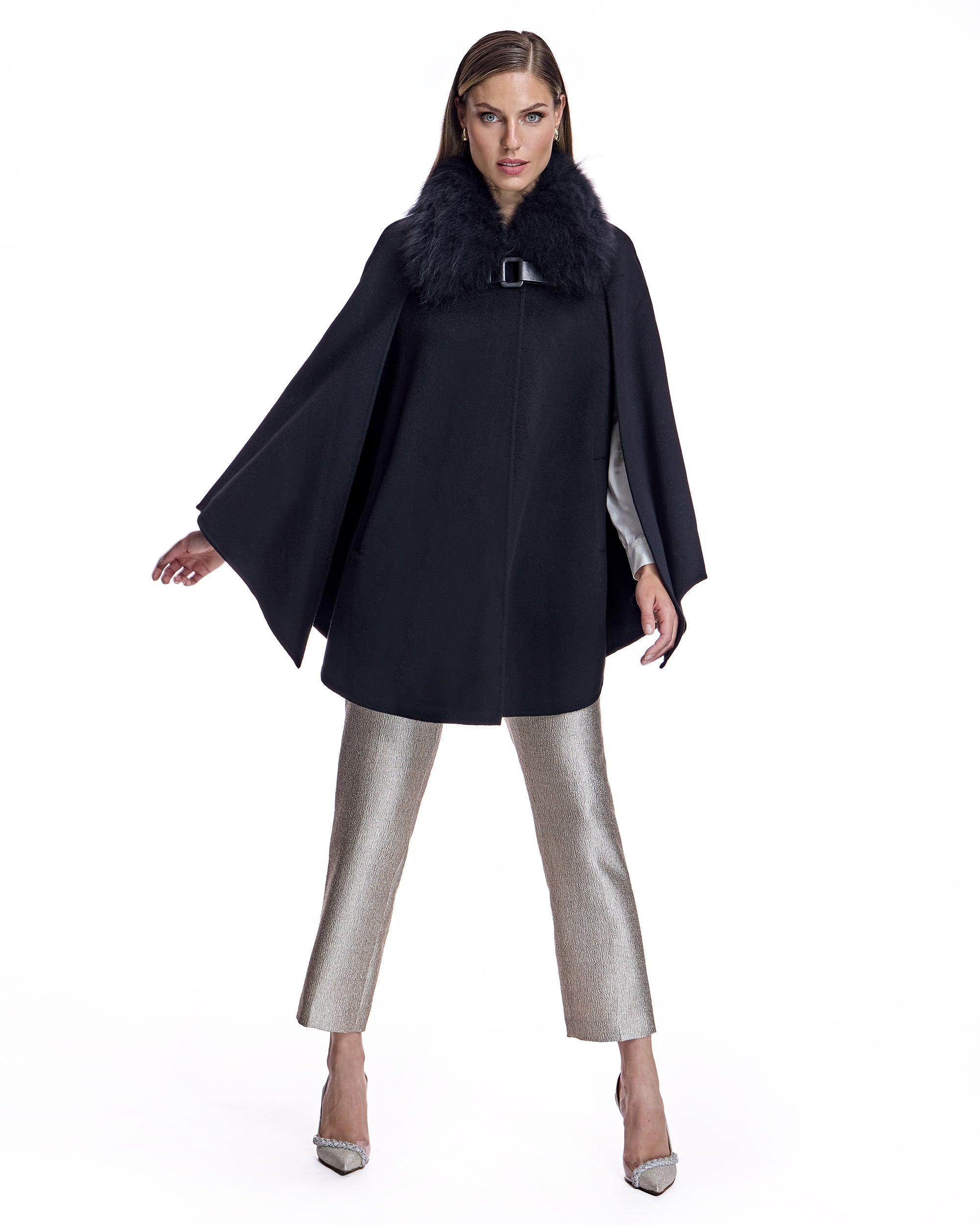 Julia & Stella by Maximilian Buckle Detailed Cashmere Cape with Dyed Cashmere Goat Trim-Maximilian