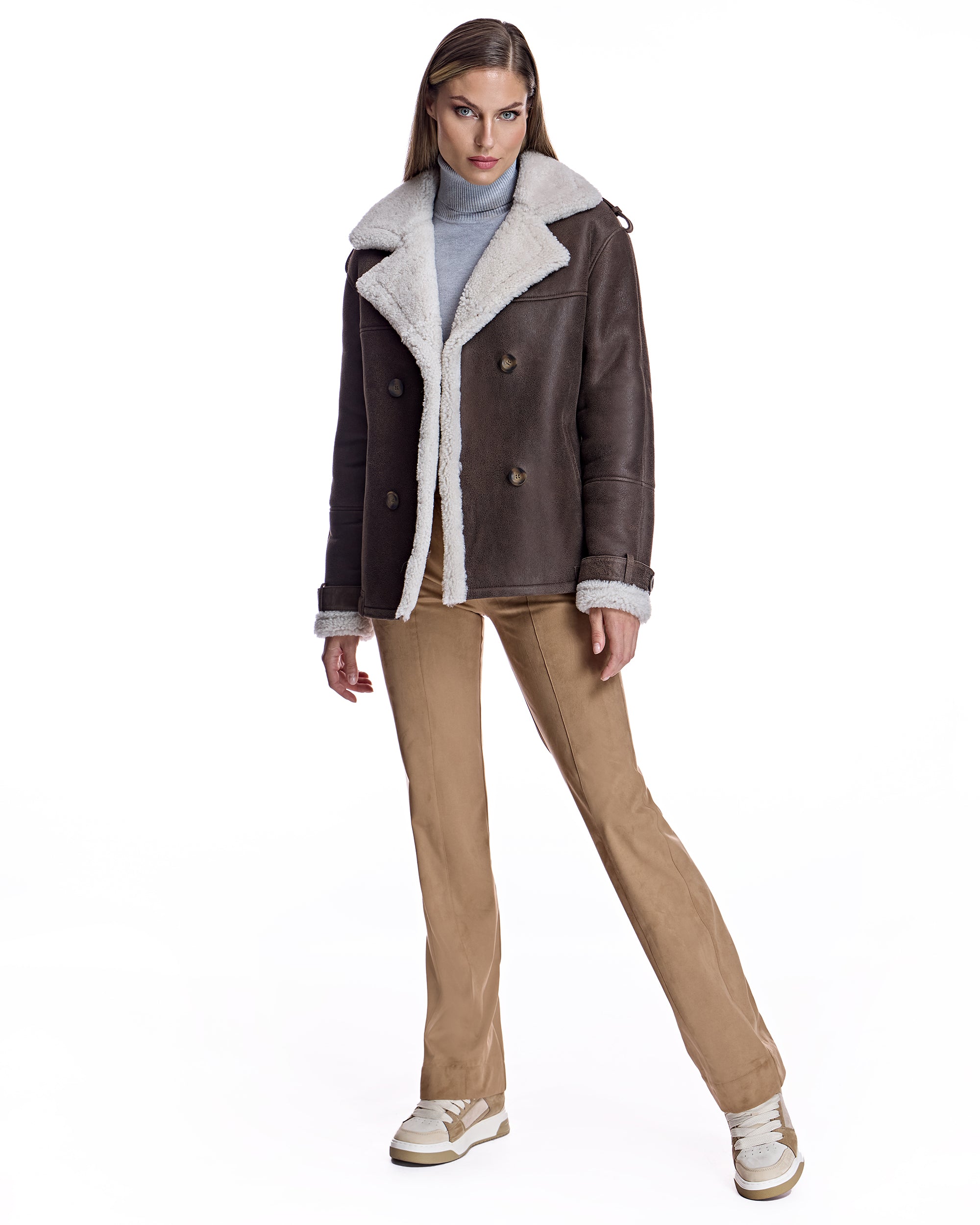 Julia & Stella Double Breasted Shearling Jacket-Maximilian
