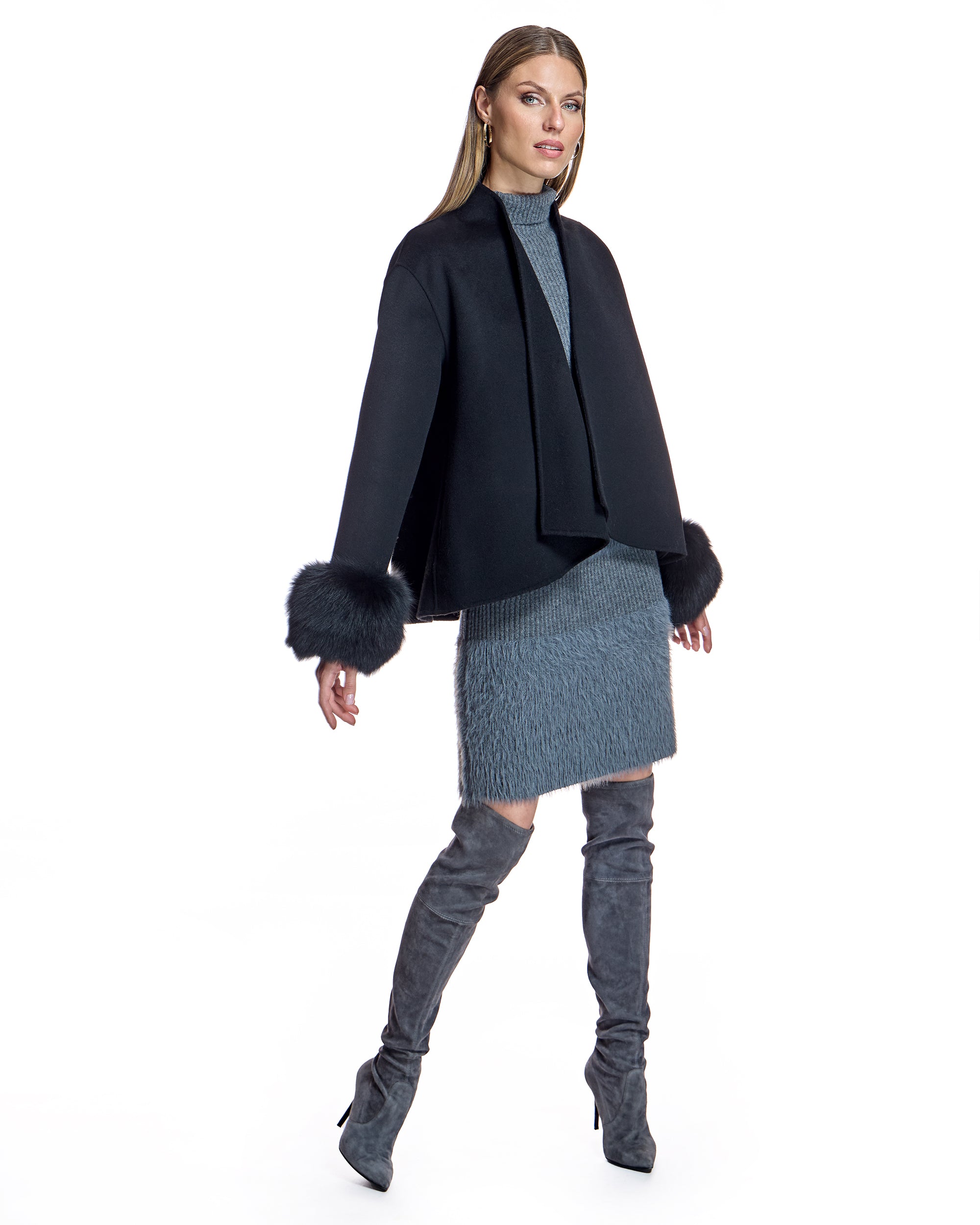 Wool Cape with Dyed Fox Cuffs -Maximilian