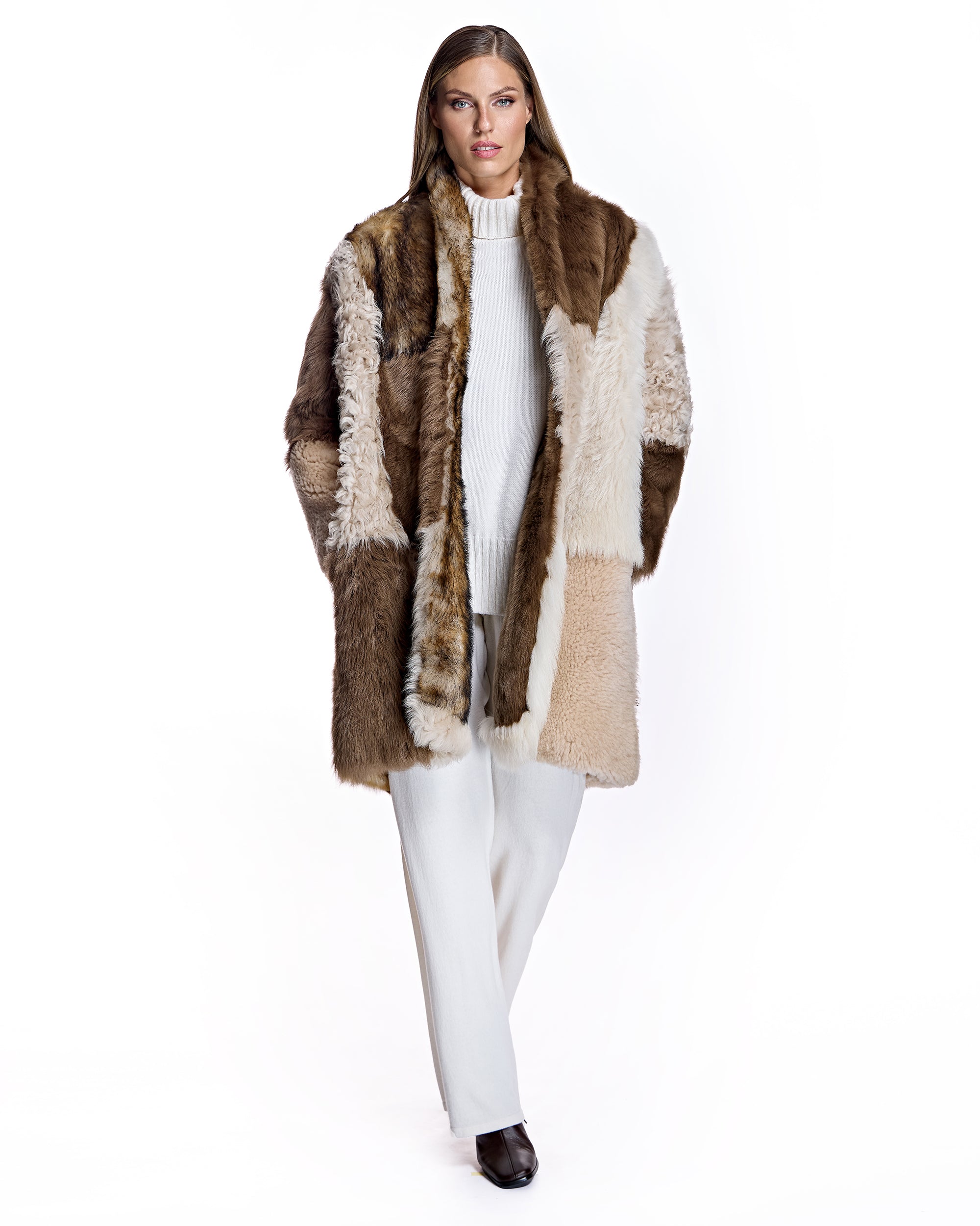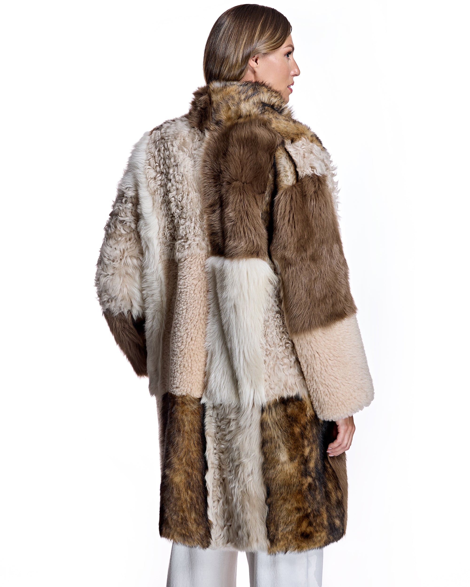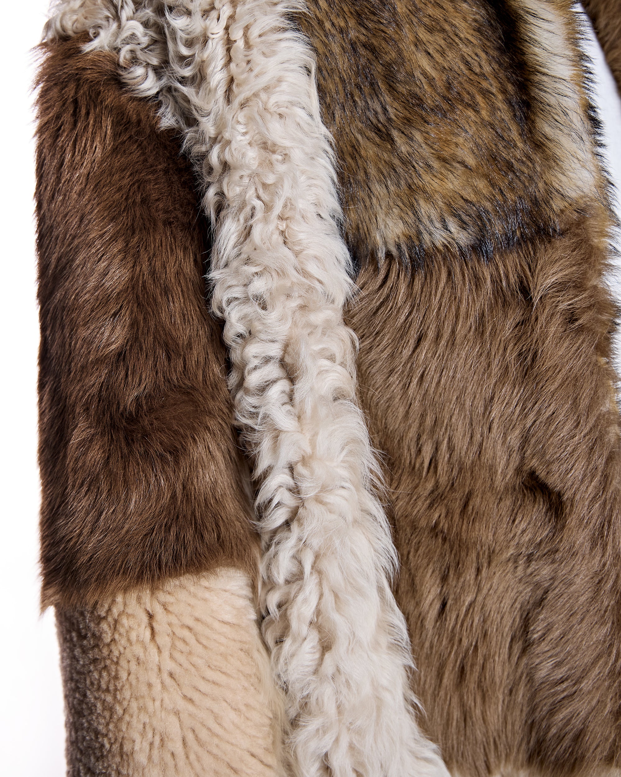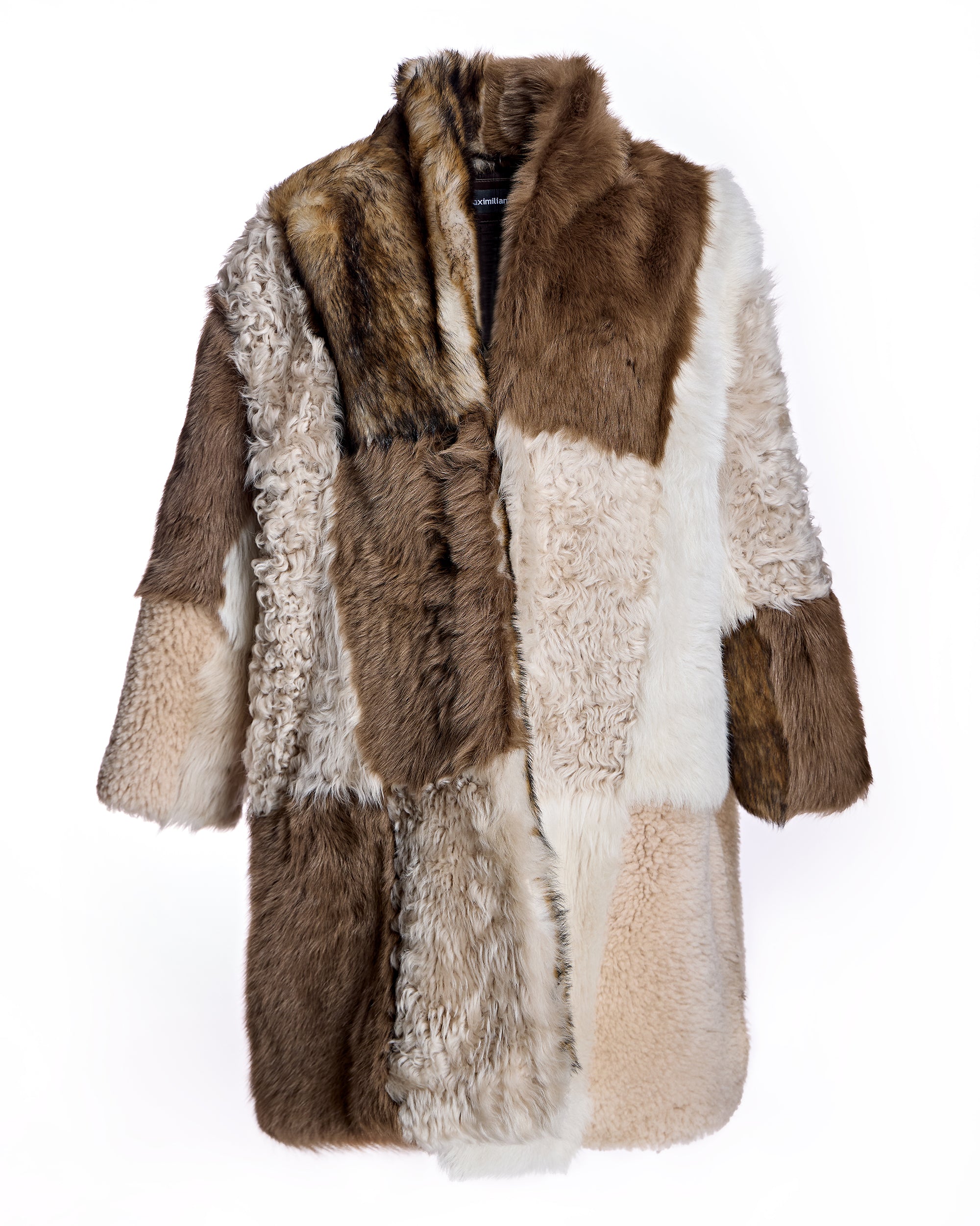 Julia & Stella by Maximilian Patchwork Shearling Overcoat