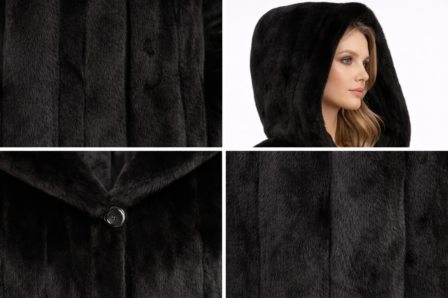 51" Black Dyed Mink Coat with Hood – Skin-on-Skin Construction