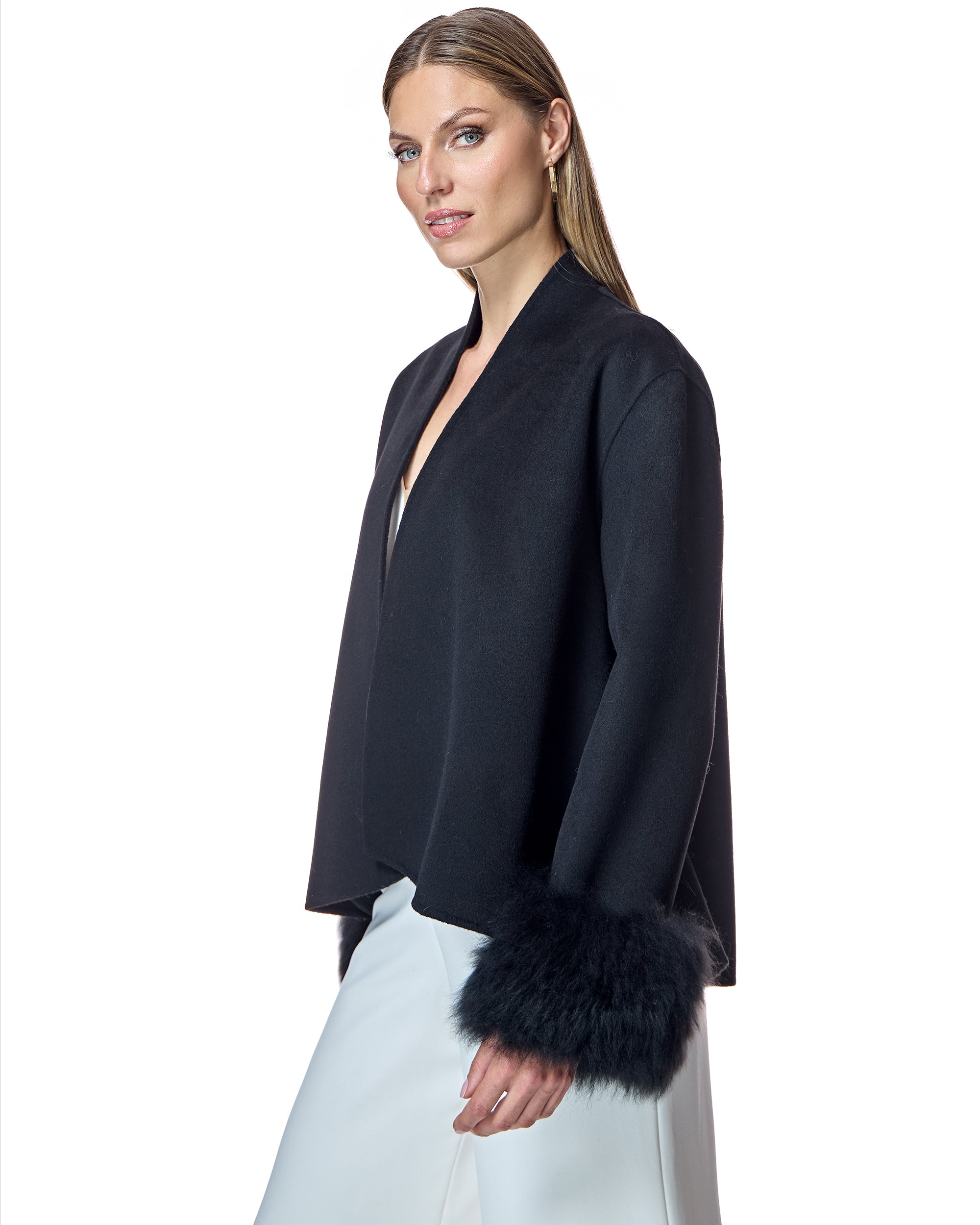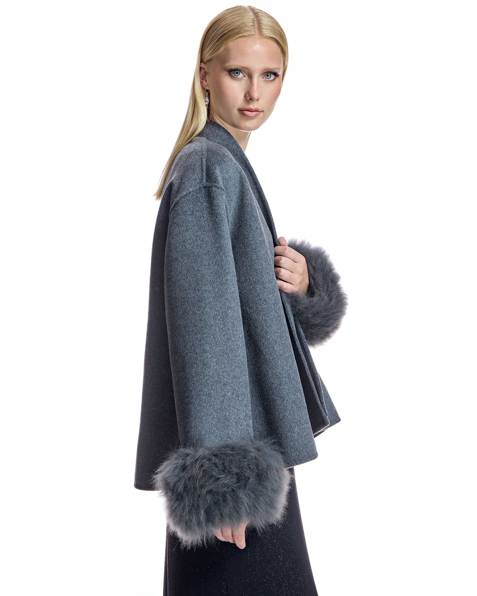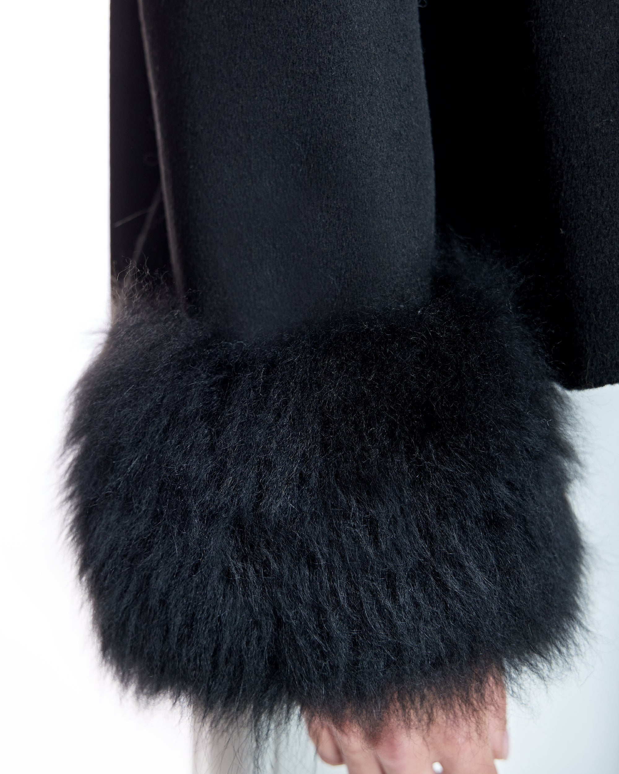 Wool Cape with Cashmere Goat Cuffs -Maximilian