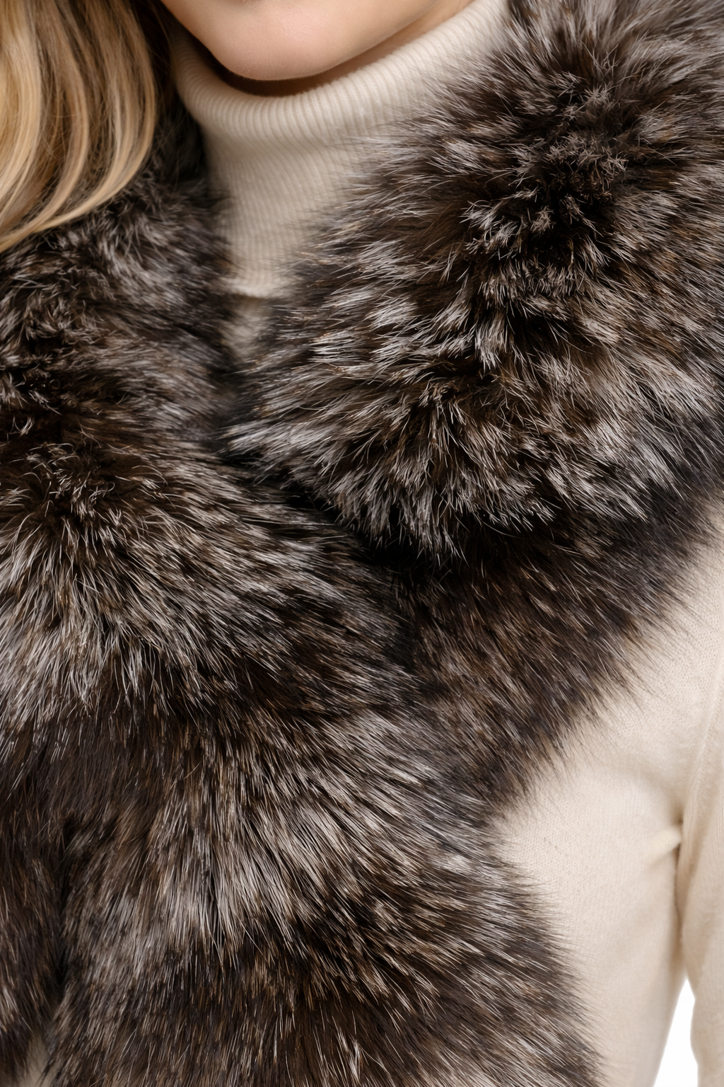 Indulge in luxury with our Fox Pull-Thru Scarf, crafted from genuine silver fox fur featuring rich, natural tones that shimmer beautifully in the light. The pull-thru design ensures a secure, comfortable fit while showcasing the fur’s full texture and volume.