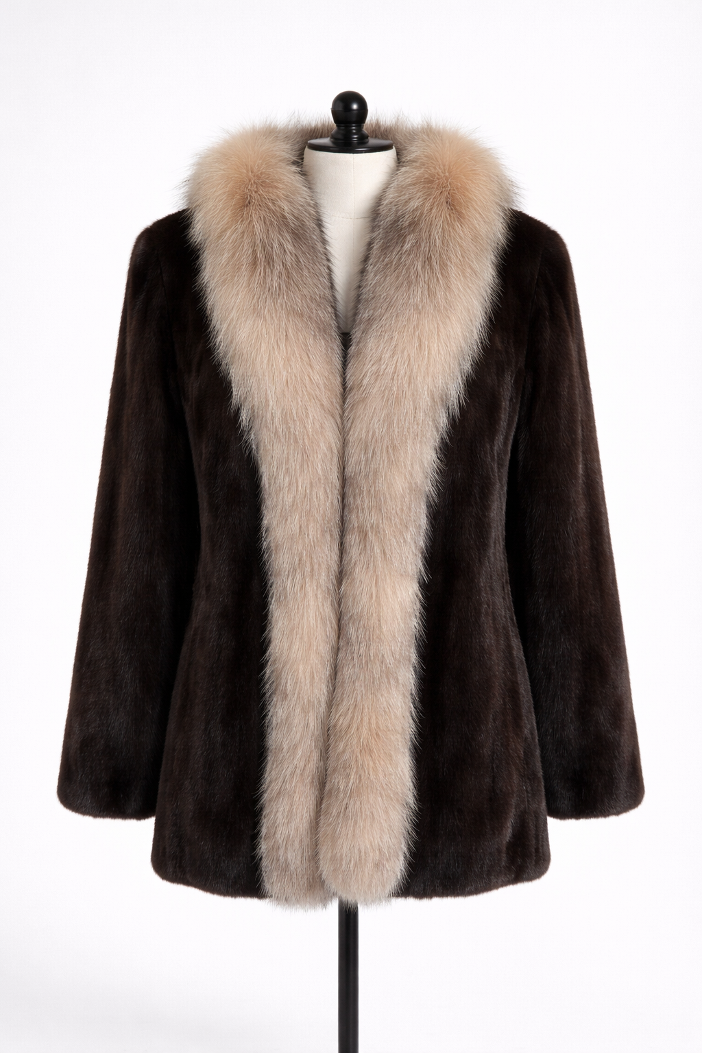 Archive & Vintage Brown Mink with Crystal Dyed Fox Tuxedo-32"
