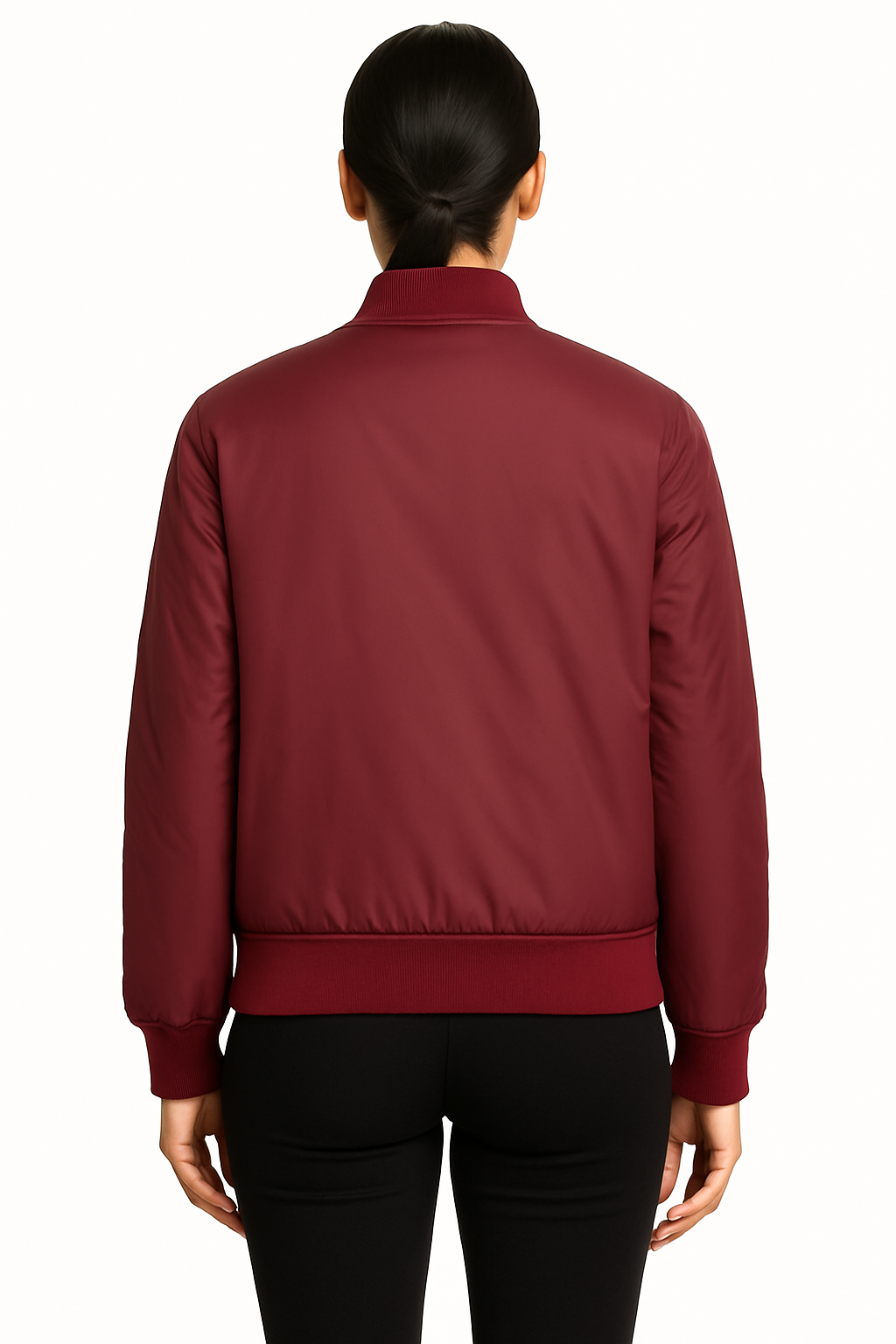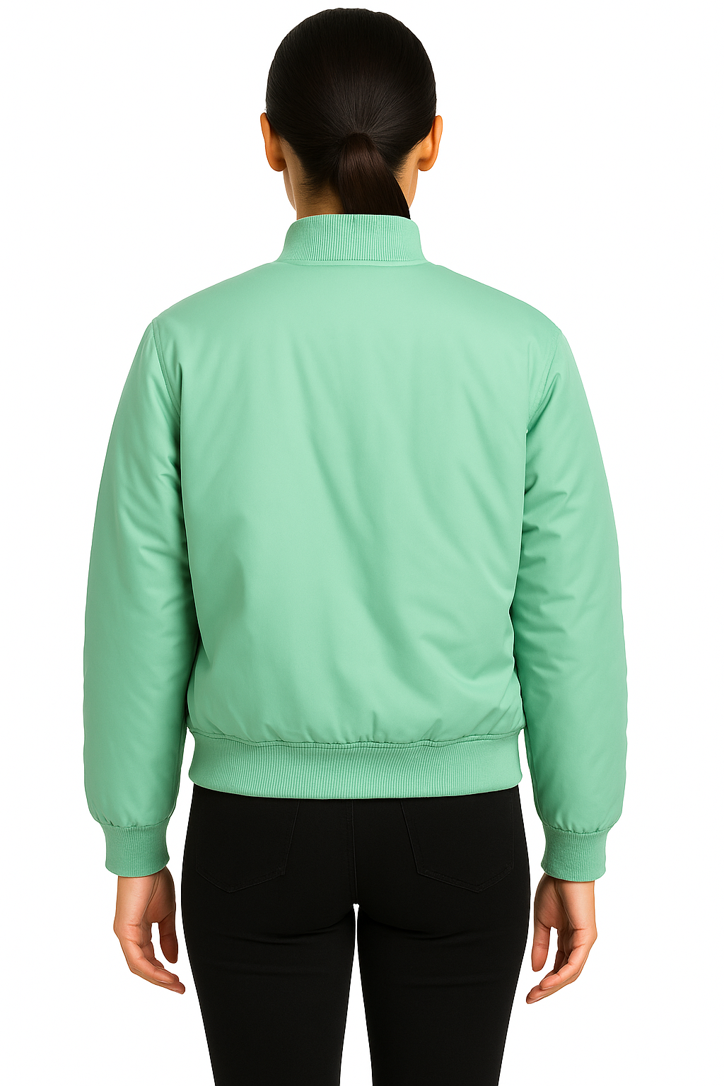 Designed with classic baseball-jacket detailing — including a jersey knit collar, cuffs, and hem — this piece blends luxury and athletic style effortlessly. Warm, light, and incredibly versatile, it transitions seamlessly from casual daytime outfits to elevated evening looks.