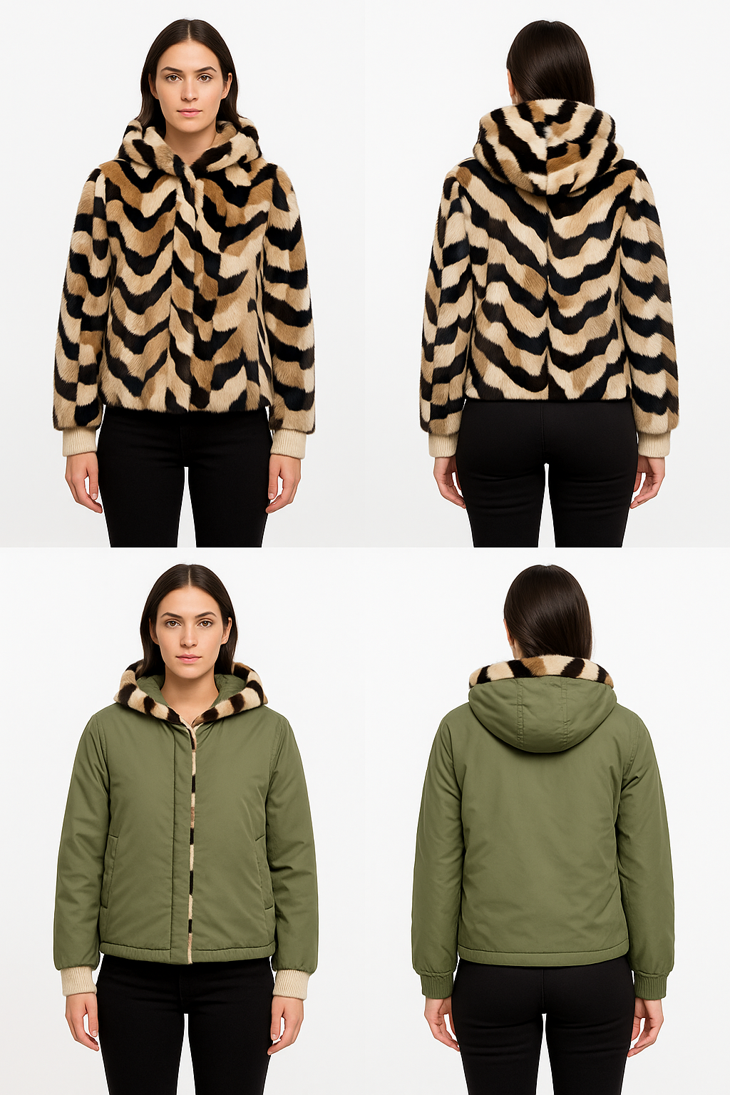 Reversible: Mink fur ↔ Polyester fabric