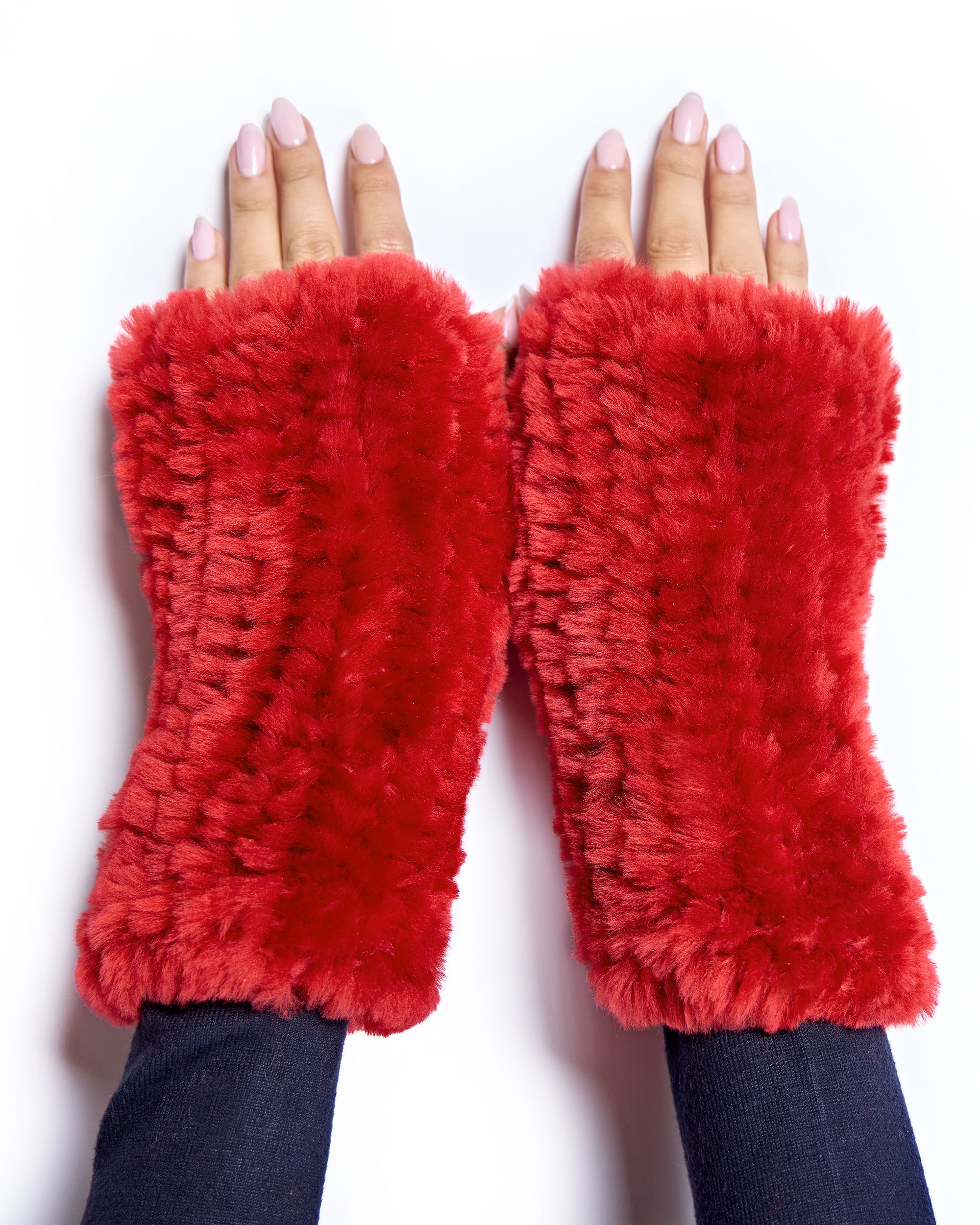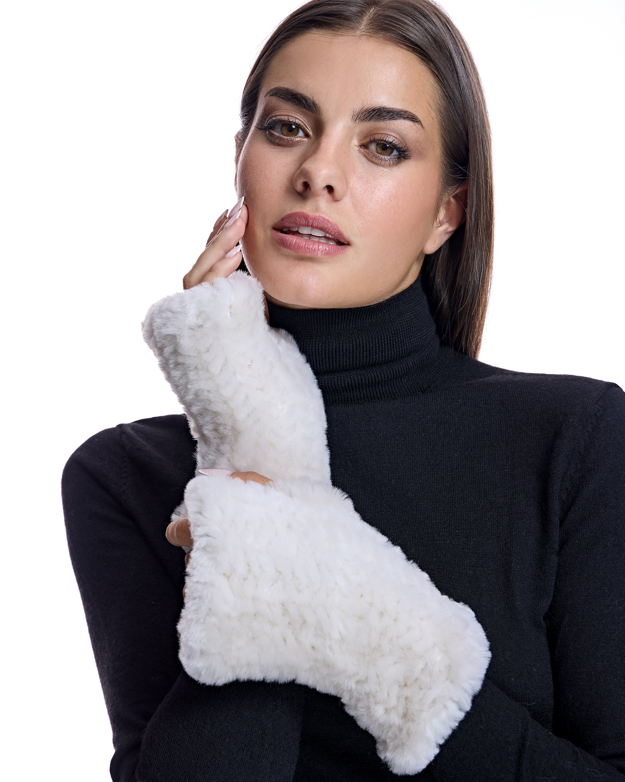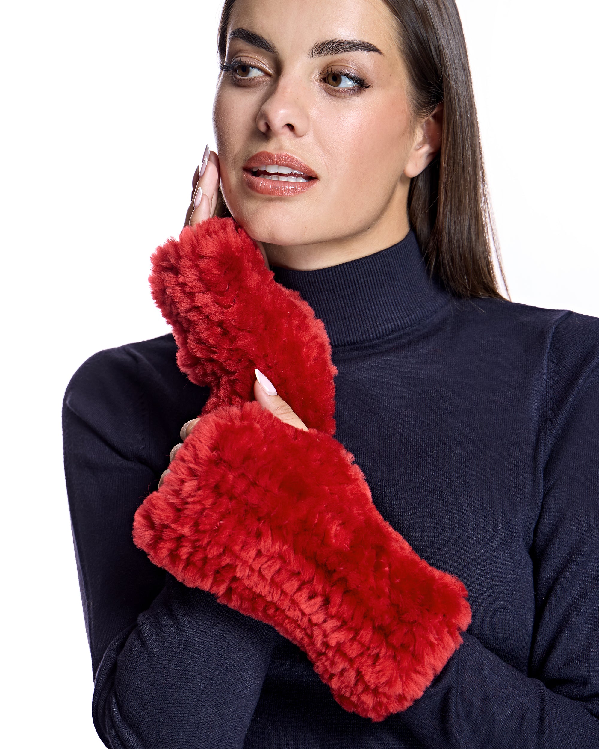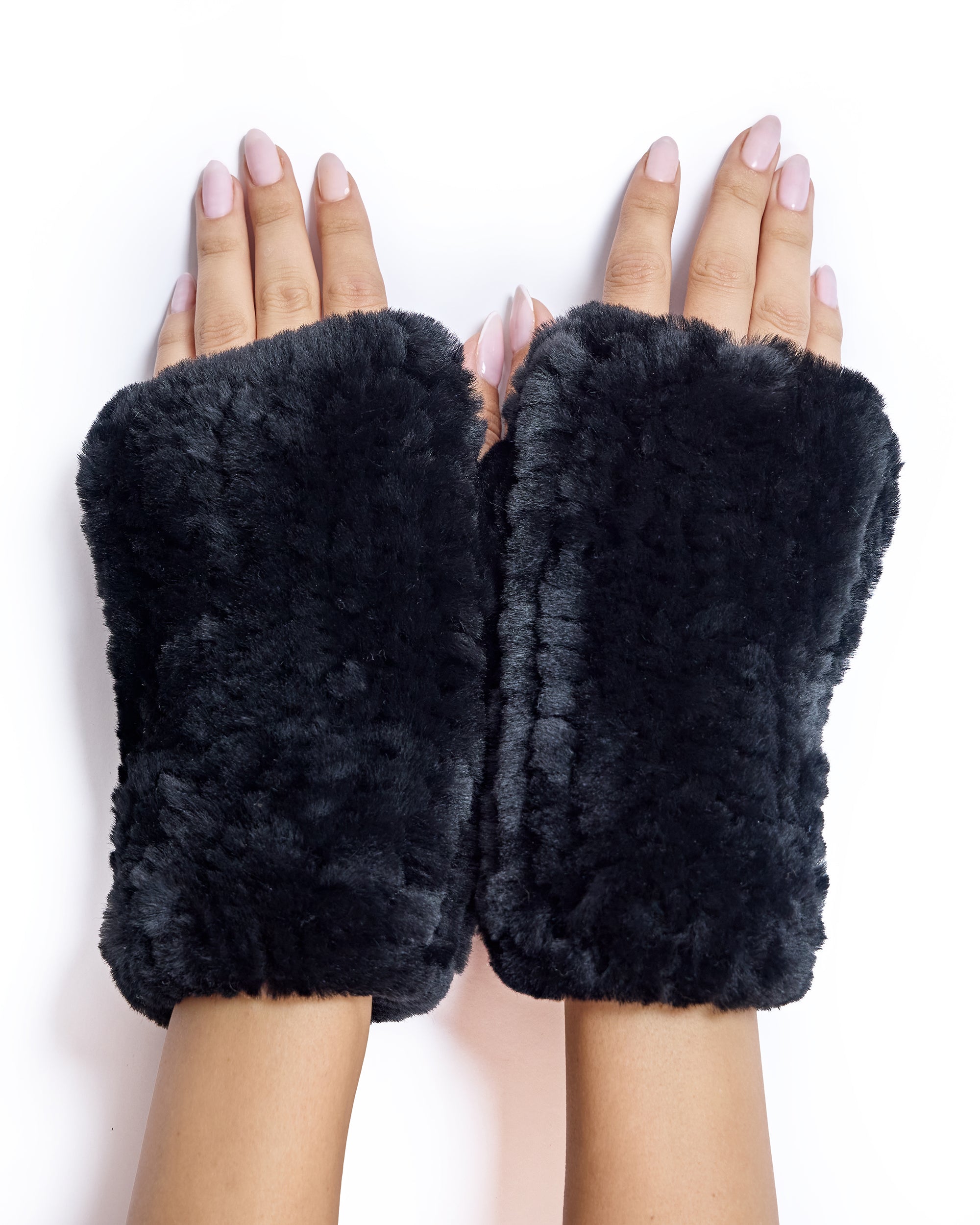 Julia & Stella by Maximilian Knitted Shearling Fingerless Gloves-Maximilian