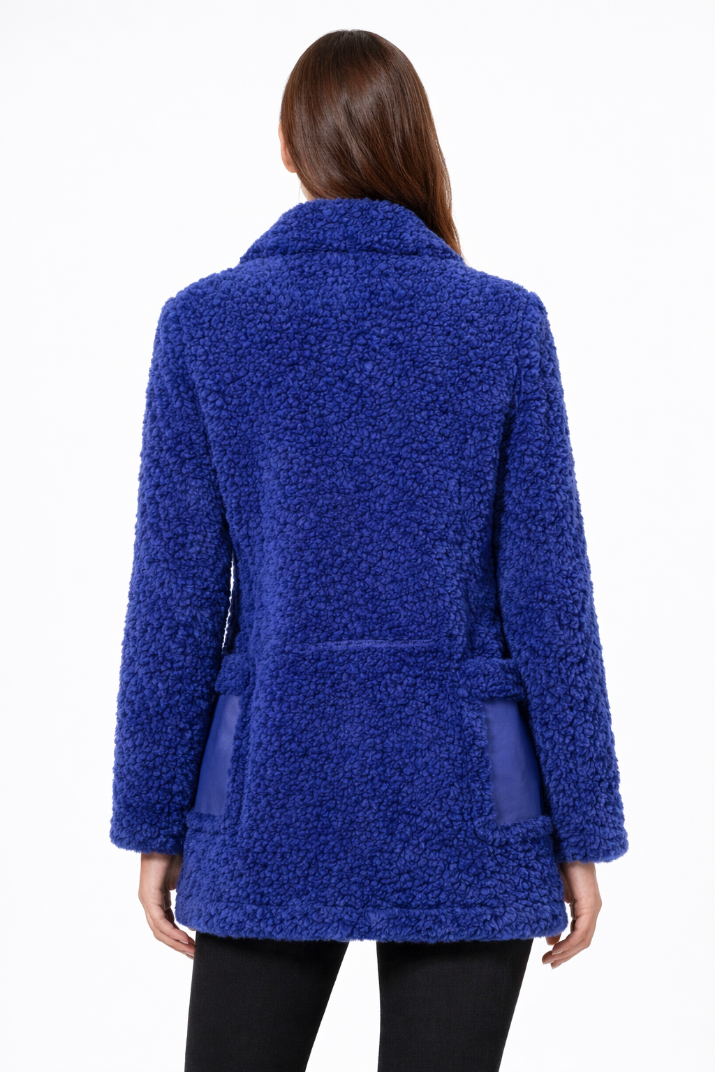 Rendered in a rich royal blue, this jacket delivers a confident yet elegant statement, perfect for elevated everyday wear.