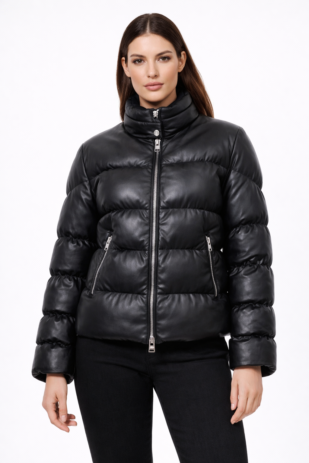 Combining luxury leather with functional warmth, this puffer jacket offers comfort, mobility, and modern sophistication—perfect for everyday winter wear.