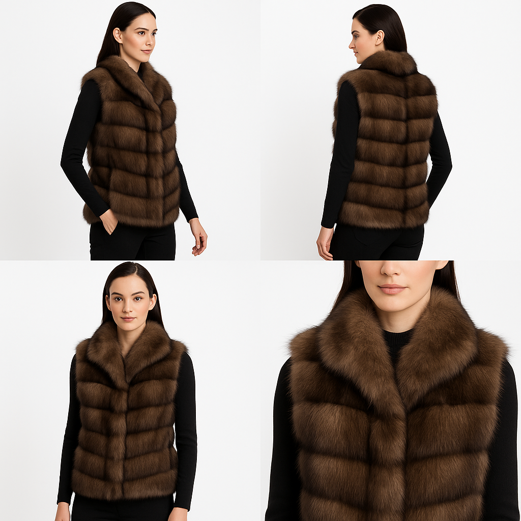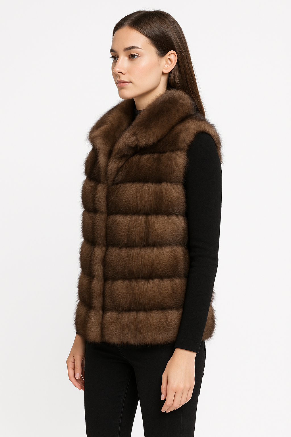 Elevate your wardrobe with the unparalleled luxury of our 24" Tip Dyed Barguzin Sable Vest, crafted from the world’s most coveted Russian-origin sable fur. This exquisite vest features a horizontal body design, showcasing meticulously aligned bands of soft, dense, and naturally glossy sable, renowned for its lightweight warmth and exceptional durability.