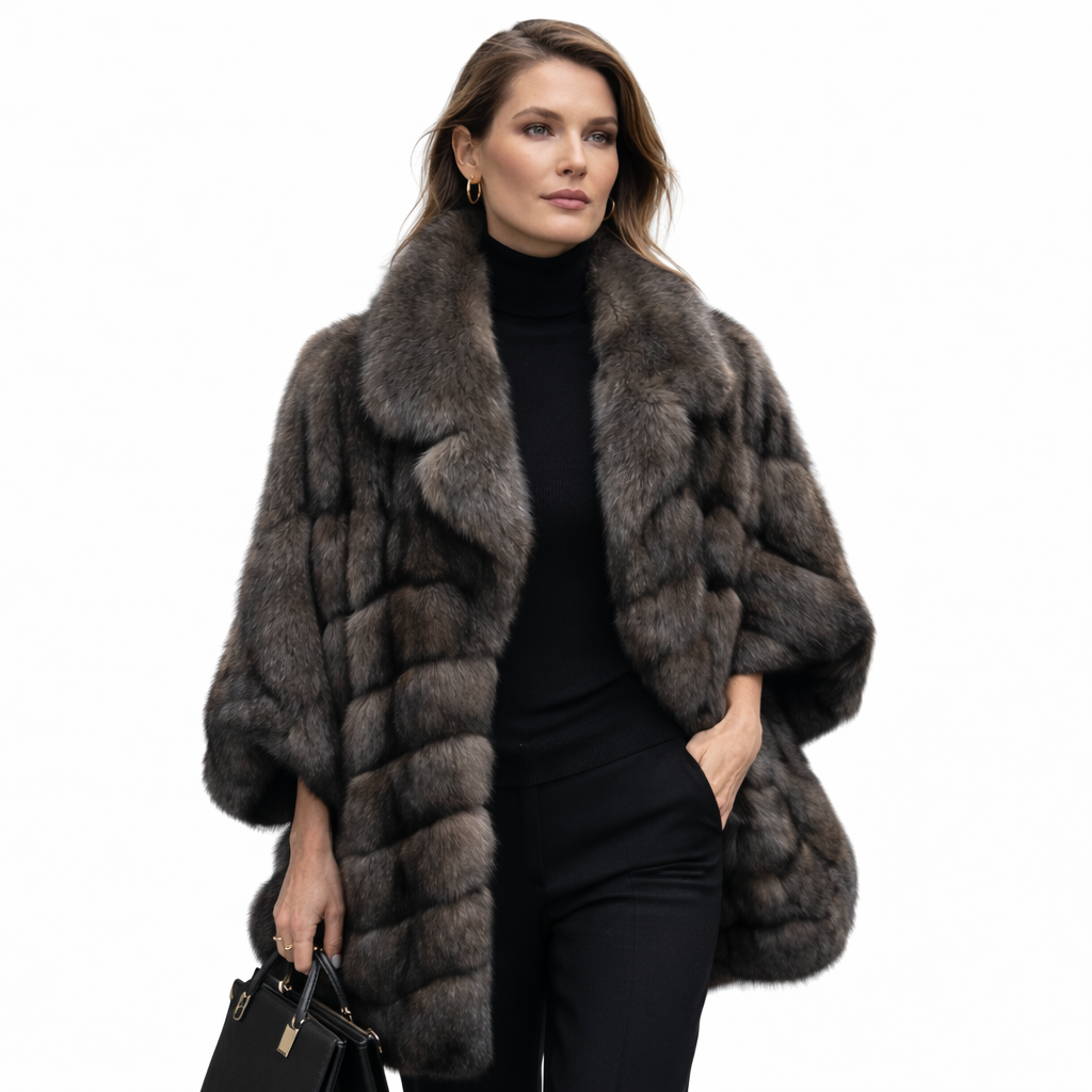 An exceptional expression of rarity and design mastery, this 31-inch Barguzin sable cape jacket is crafted from the most prized sable in the world. The sculptural batwing sleeves and architectural notch collar elevate the silhouette into a statement of effortless authority. Designed as a true one-of-a-kind collectible, this cape jacket merges heritage craftsmanship with contemporary edge — a powerful yet refined interpretation of luxury.
