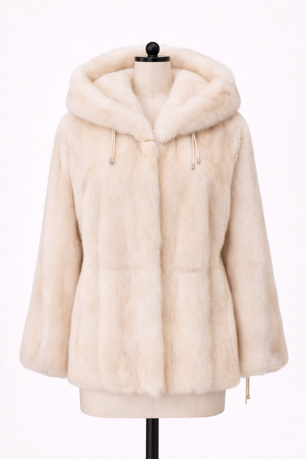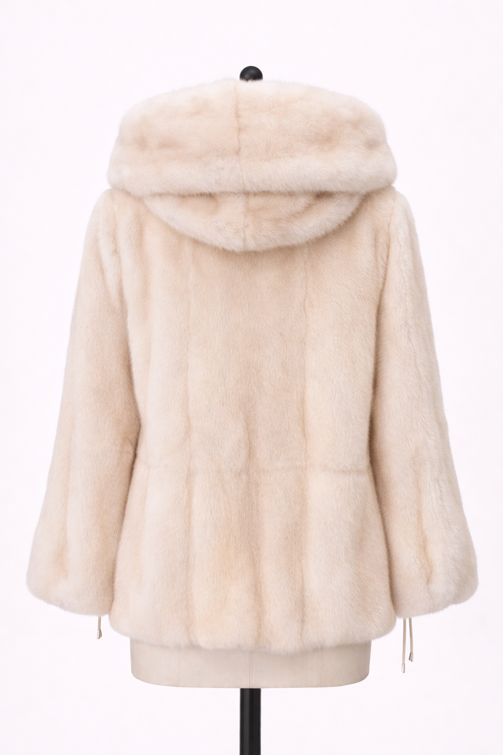 Archive & Vintage 27" Perla-Dyed Mink Jacket with Double Fur hood & Drawstring
