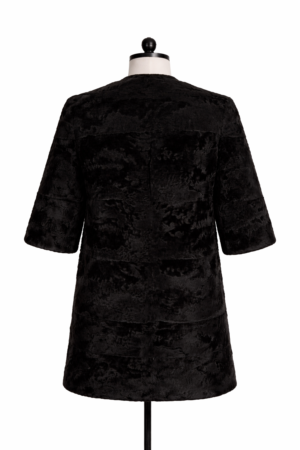 A rare and artful archive piece, this vintage black broadtail jacket is a striking example of couture-level craftsmanship. Constructed from genuine broadtail fur with its signature velvety texture and subtle tonal patterning, the jacket offers a refined matte finish that feels both sculptural and understated.