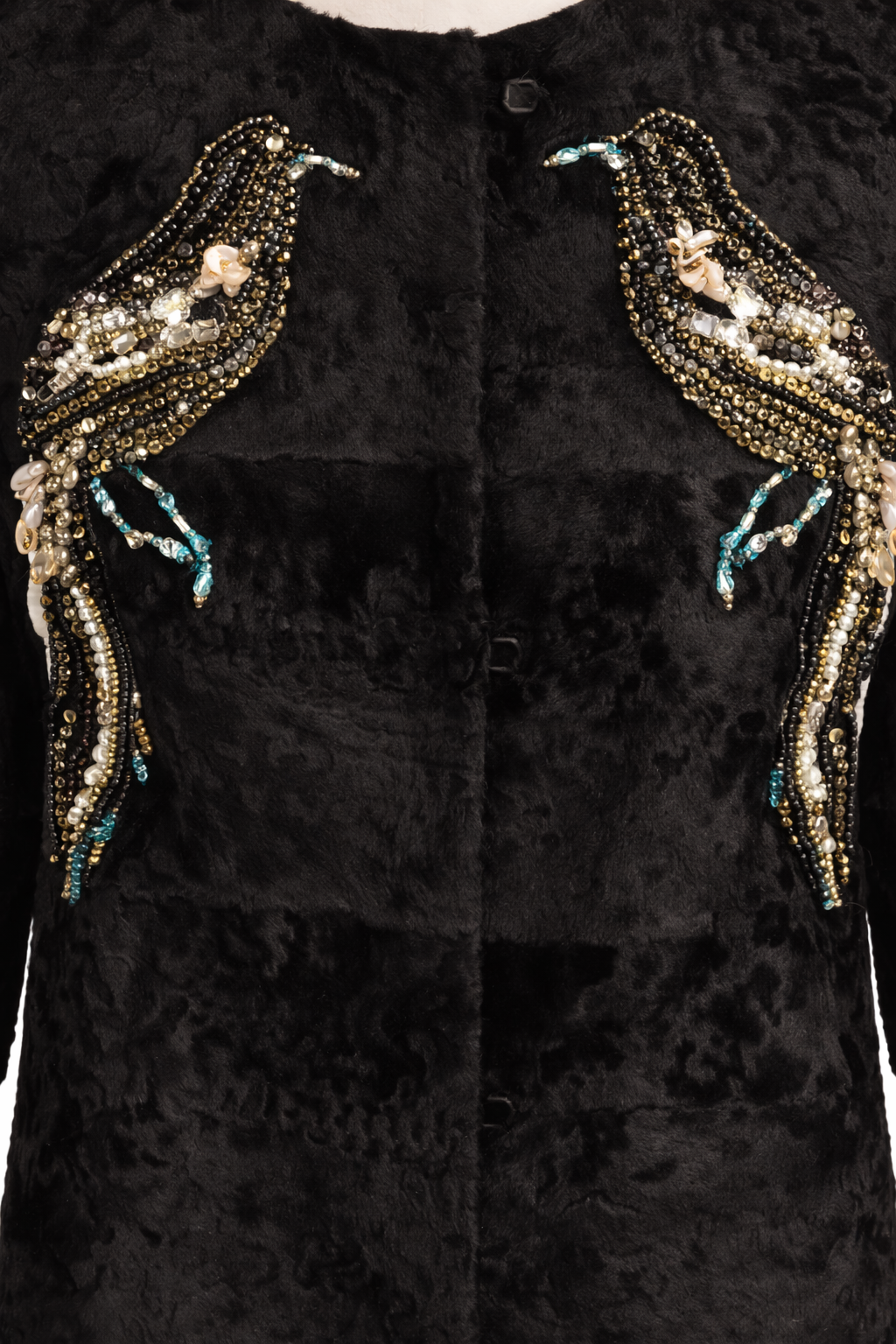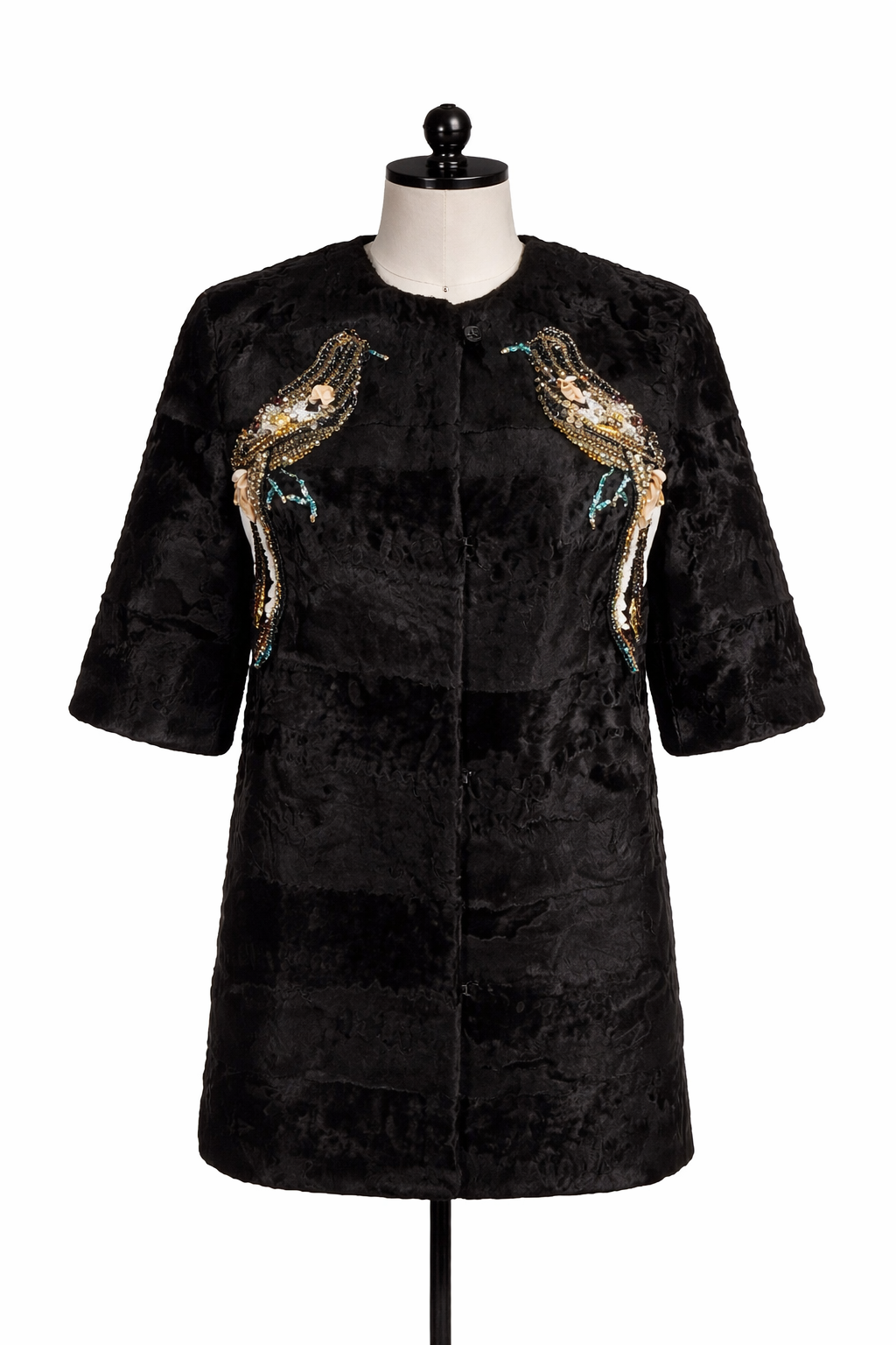 Archive Black Broadtail Jacket with Jeweled Bird Embroidery – Designer