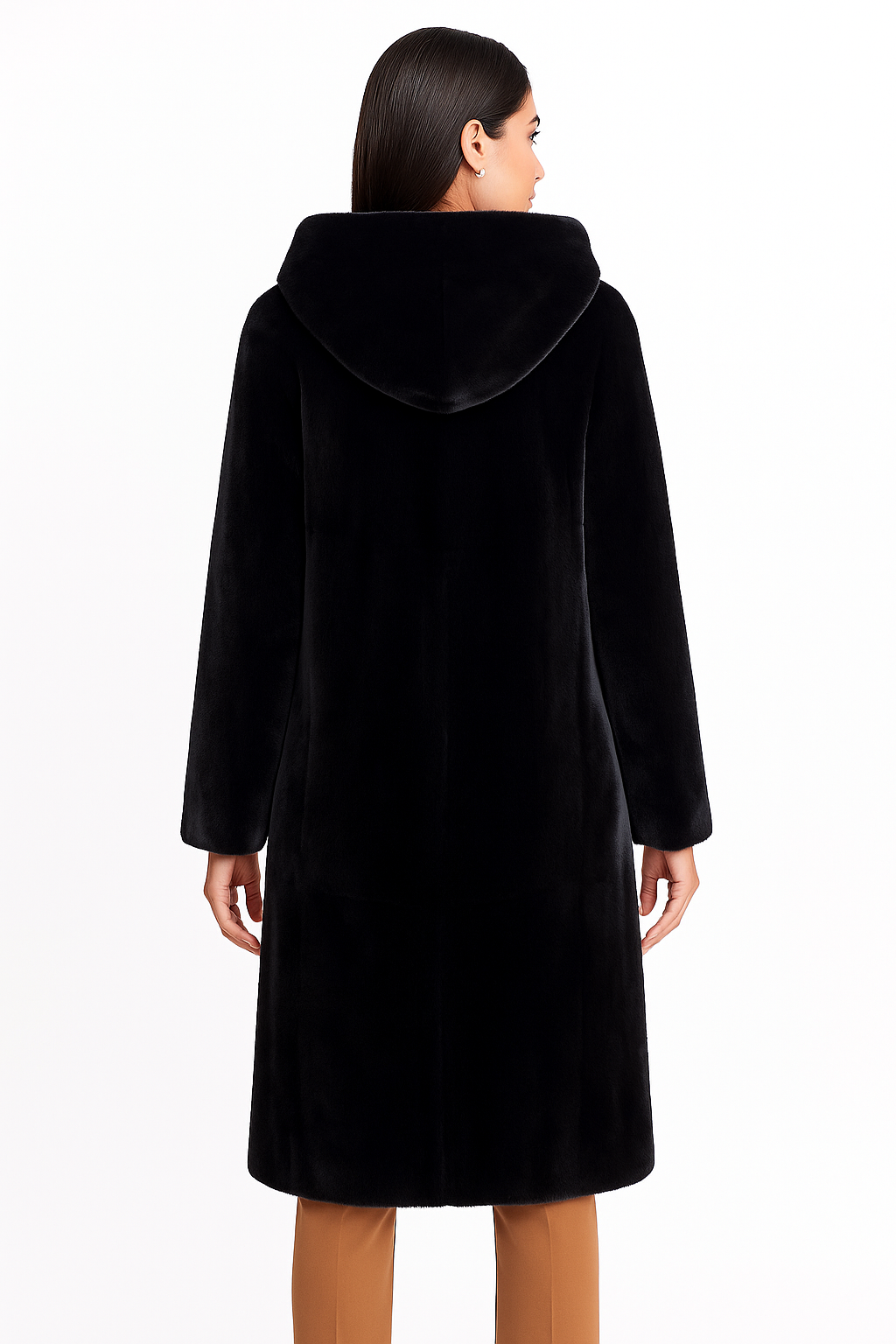 39" Dyed Sheared Mink Reversible Coat with Hood