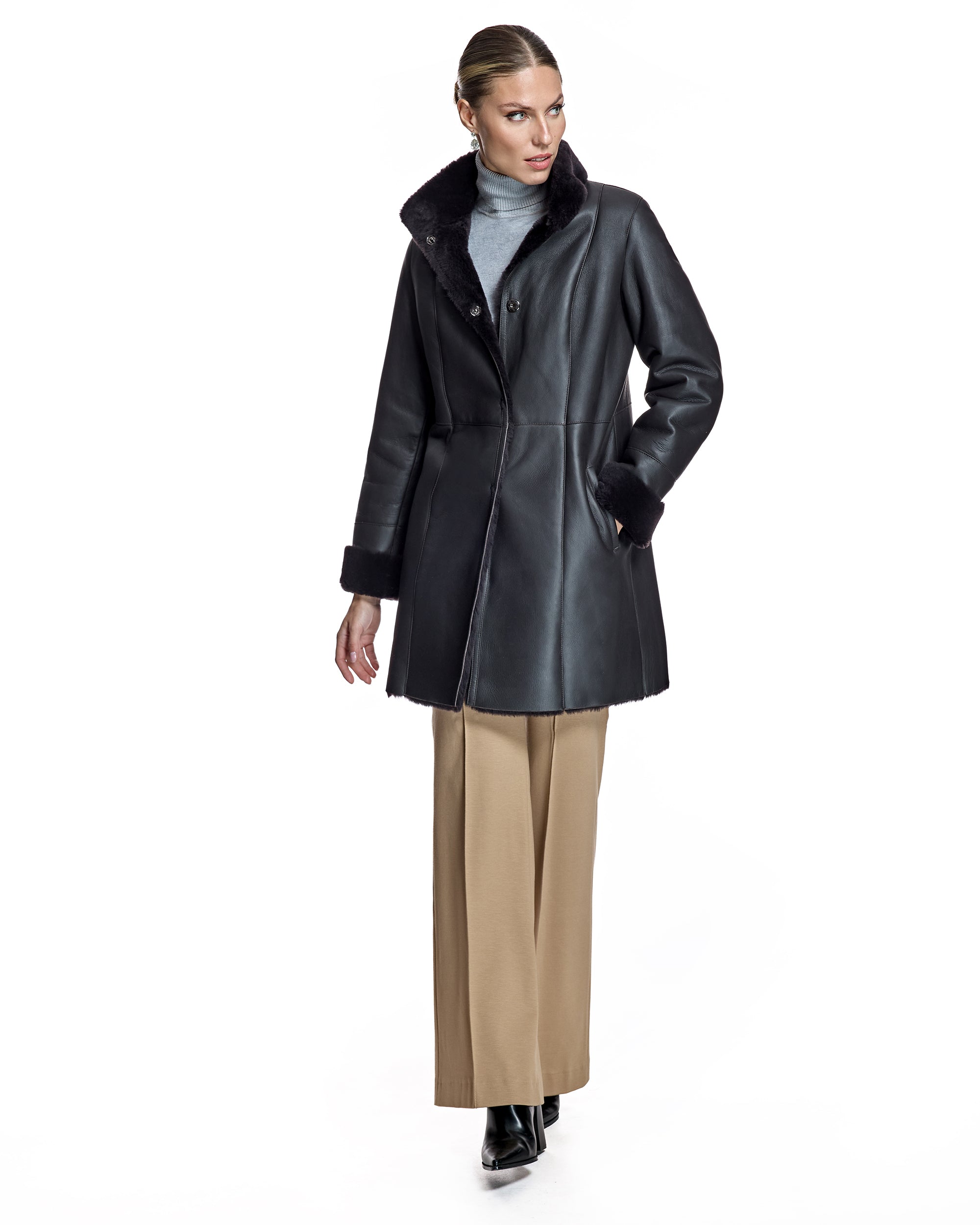 Nappa Shearling Jacket with Stand Collar-Maximilian